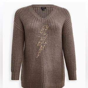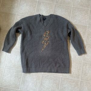 Chunky Graphic Sweater. Long sleeve v neck featuring a metallic beaded lightning bolt. Ribbed chunky style. Excellent used condition.