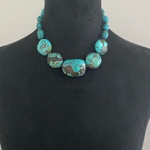 This beautiful necklace is in excellent preowned condition. There are natural flaws in the turquoise.