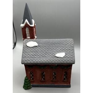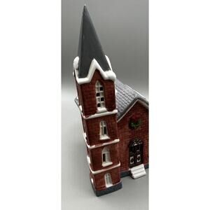 Add a touch of holiday spirit to your home decor with this beautifully crafted church from the Holiday Expressions Dickens Village collection. Made of porcelain with a glazed finish, this brick church features asymmetrical shapes and multicolor accents that perfectly capture the classic Christmas village theme. The 1991 licensed reproduction from China is designed to bring back memories of the early 1900s. Whether you are looking for a gift for a loved one or adding to your own collection, this medium-sized church is sure to impress. The church measures 5 x 5.5 x 9.25 with the Tower. There are no chips or crack, and does not come with a box. Refer to photos for details.