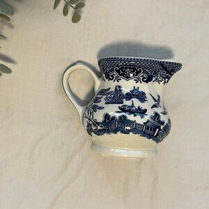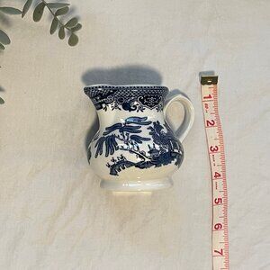 Infuse your tea-time with a touch of elegance with this beautiful Queen's ceramic creamer pitcher. In classic blue and white, this piece features intricate patterns reminiscent of traditional English chinaware. It measures approximately 4 inches in height, making it the perfect size for serving cream or milk with your favorite hot beverages.