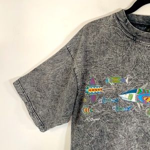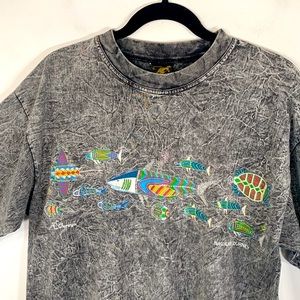 Summer Vacation Ready Unique 100% Cotton Tie Dyed Short Sleeve Fish Graphics Tee, Size: XL, Color: Grey Whiskering Design, Planet Earth Nawalah Journey, Made in Australia, Each Garment Has Been Individually Hand Dyed, No Two Garments Are The Same, Crewneck, Machine Wash Cold, Pit to Pit 22 Inches, Back Length 29 Inches, In Excellent Condition