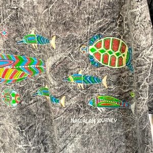 Churinga Designs Tie Dye Fish Graphics Nowalah Journey Mens Size XL Grey Tee