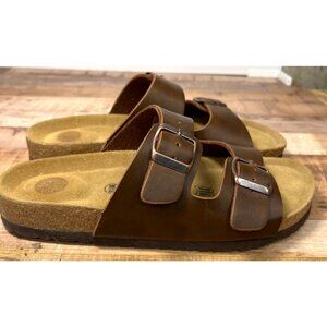 ChusionAire Two Strap Leather Sandals In Dark Brown Womens 8.5M