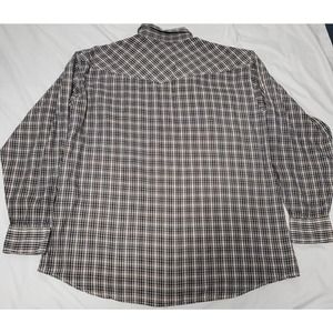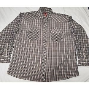 Chute 17 Plaid Western Pearl Snap Buttons Up Long Sleeve Shirt Brown Black Sz XL