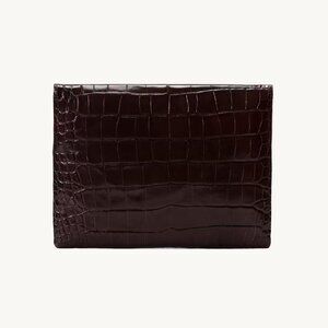 In mint shape. From a cool, contemporary Polish brand, this is a chic laptop case that'll fit up to a 16" laptop (but please check exact measurements listed below). Flap closure with two magnets. Series number hand-stamped in the front in gold. Beautiful brown, glossy leather.
