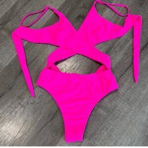 Chyrll Popular Classic Hot Pink One Piece Wrap High Waist Swimsuit NWT ~ Med.