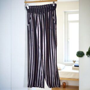 Ci Sono Black & White Stripe Wide Leg Pants – Smocked Waist – Size L