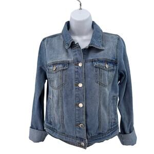 Ci Sono Denim Collection Medium Wash Button Up Jean Jacket Womens M Long Sleeve