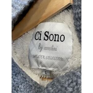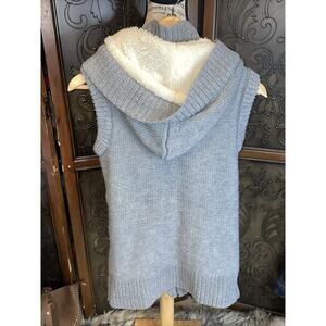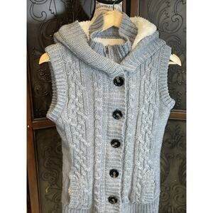 Ci Sono Gray Hooded Sherpa Lined Knit Sweater Vest Zip and Button Women's L