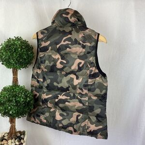 Ci Sono Green & Black Camouflage Print Zip Up Sleeveless Puffer Vest L