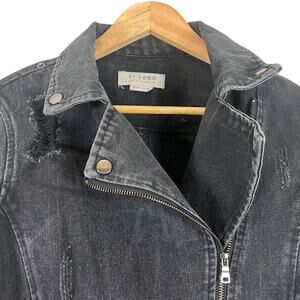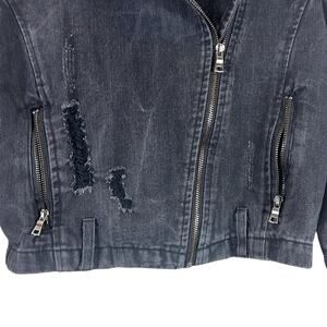 Ci Sono Jacket Womens M Black Moto Denim Biker Distressed Crop Rocker Grunge Y2K