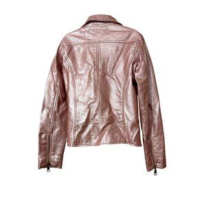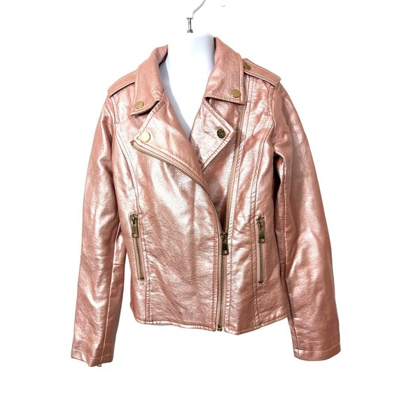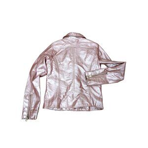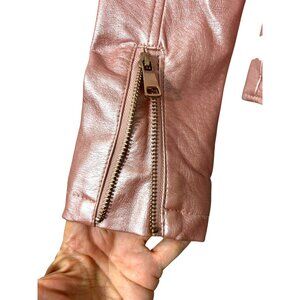 Ci Sono Kids Girl Moto Biker Jacket 8 Metallic Pink Faux Leather Zipper Pockets