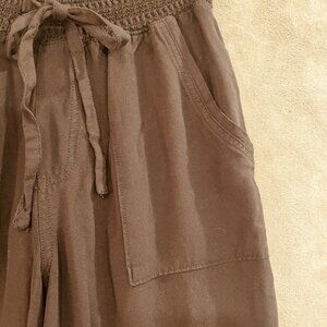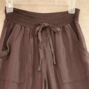 Ci Sono Pants Womens Large Brown Smocked Waist Pull On Jogger Pockets Rayon Casual