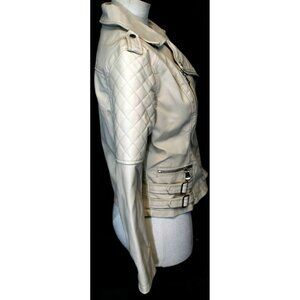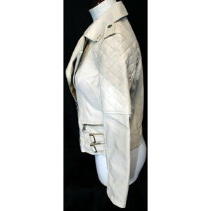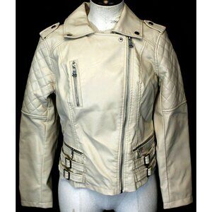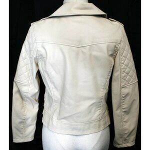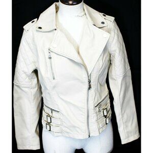 Ci Sono White Faux Vegan Leather Motorcycle Jacket Womens Small Pockets Quilted