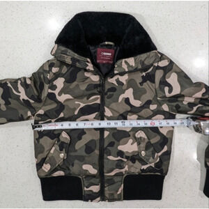 Ci Sono camo warm puffer jacket, slightly cropped, with front zip for closure, pockets. Black cozy fleece collar. Very comfortable!