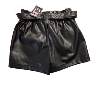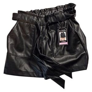 Ci Sono Women's Black Faux Leather Paperbag Shorts Size M