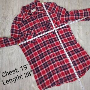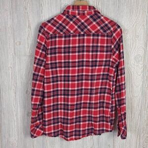 Ci Sono Womens Medium Button Front Flannel Shirt Jacket Red Blue Plaid Pockets