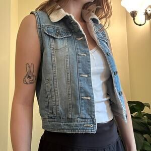 Ci Sono Y2k boho denim vest button up collared jacket size small