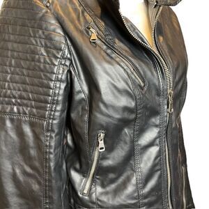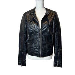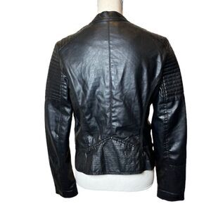 Ci Sono by Cavalini Biker Jacket Black Faux Leather Quilted Zippers Size Large