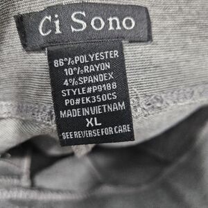 These Ci Sono women's pants XL are a stylish and comfortable addition to any woman's wardrobe. These ankle-length pants are designed for a regular fit and come in a versatile gray color. Perfect for everyday wear or dressing up for a night out, these pants offer a trendy style with a touch of sophistication. Made by the brand Ci Sono, known for their quality and attention to detail, these XL pants are sure to become a go-to piece in your closet. 28 inch inseam.
