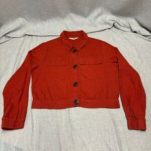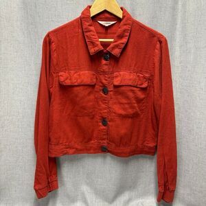 Ci Sono-Linen Collection Button Down Long Sleeve Crop Top Burnt Orange Women's L