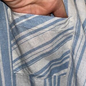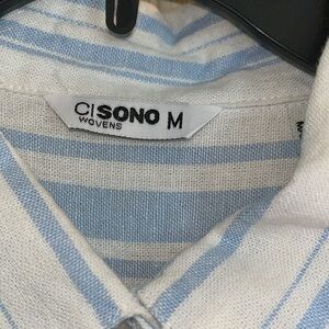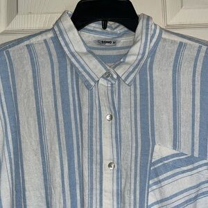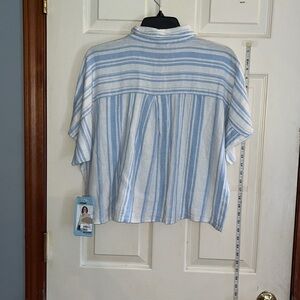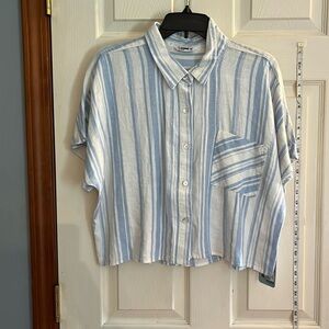Ci sono-M-White/blue stripes-short sleeve linen blend, cropped, button down top/shirt.