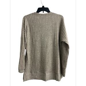 CiCi Bird Tan Brown Neurtal Crew Neck Ribbed Knit Sweater Top Women's Size Large