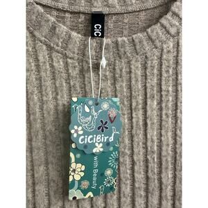 CiCi Bird Tan Brown Neutral Crew Neck Ribbed Sweater Top Women's Size Large NWT