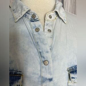 Ci Sono Denim Chambray Snap Front Top Shirt 2X