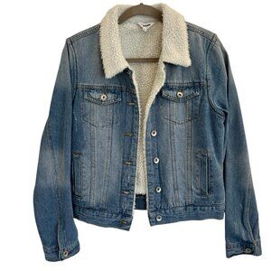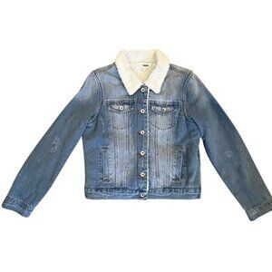 CiSono Women Sherpa Lined Trucker Jean Jacket L Faux Fur Collar Fleece 90s Y2K