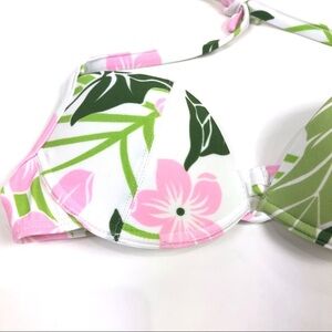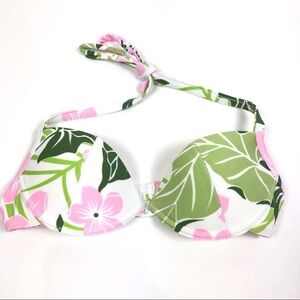 Cia Maritima Bikini Push-up halter top. Molded cup with underwire. Scallop push-up padding. Hibiscus with palm leaves. Fully lined. Demi cup. New without tags. Came in my wholesale order. Size small and large.