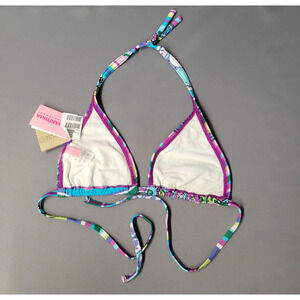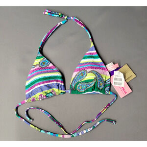 Cia Maritima Bikini Top Women's Medium Multicolor Embroidered Beaded Floral Stripe Swimwear, Beachwear