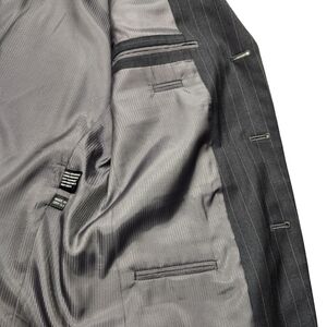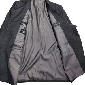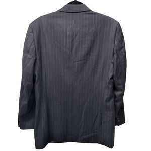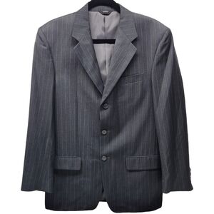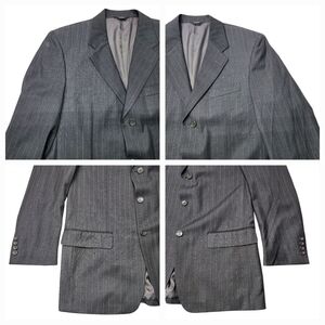 Cianni Cellini Blazer Sport Coat Hand Tailored Pinstripe Gray White with 3 Button Front Close, 4 Button Sleeves, 2 Front Pockets and Handkerchief Pocket, Notched Lapel, 4 Inside Pockets, Fully Lined. 65% Polyester, 35% Viscose.