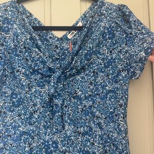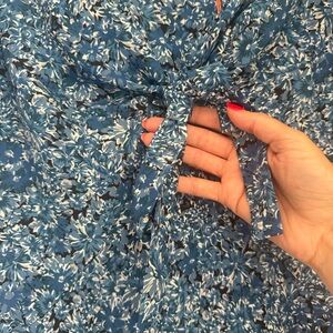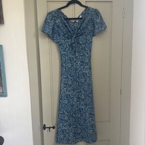 Elegant blue floral midi dress. Features a vibrant pattern. Perfect for any occasion.