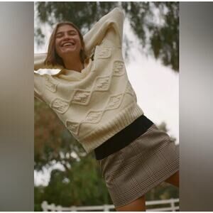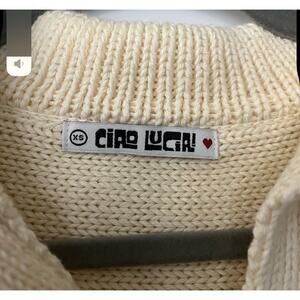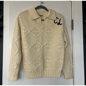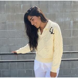Ciao Lucia Cream Cableknit Henley Collar Sweater Embroidered Initials Cotton XS