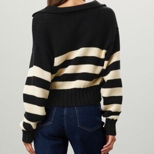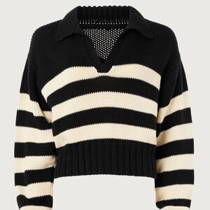 Black stripe knit (100% Cotton). Sweater. Long sleeves. Collar. Pull on. Imported.