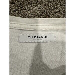 The Ciaopanic Typy Short Sleeve Pocket T-shirt is a versatile and stylish top perfect for various occasions such as travel, parties, or casual wear. Made from 100% cotton, this medium white t-shirt features a crew neck and a unique pocket detail. With a retro 70s-inspired theme and designer branding, this basic tee offers a touch of rock 'n' roll flair, making it a standout piece in any woman's wardrobe. Designed in the United States, this t-shirt is a classic addition for all seasons.