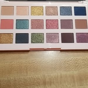 Beautiful 18 shadow palette with bright yet wearable shimmery shadows and a few matte shades. The pictures definately do not do it justice.