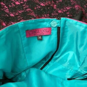 Fully lined using a bright cyan fabric. Fabric is 100% rayon but is thicker than normal rayon, which will hold its A-line shape and not cling.