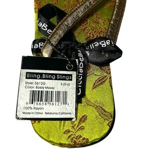 Cicciabella Green and Gold Flip Flops. Size S (5-6)