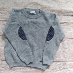 Soft gray sweater with houndstooth elbow patches.