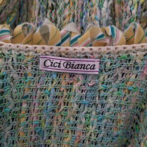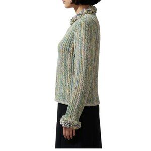 Cici Bianca Cardigan Sweater Ruffled Neckline Art to Wear Handwoven Small/Medium