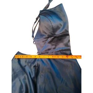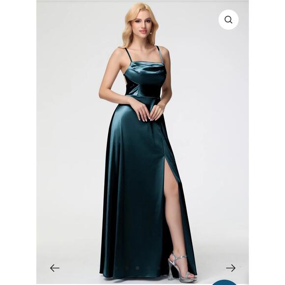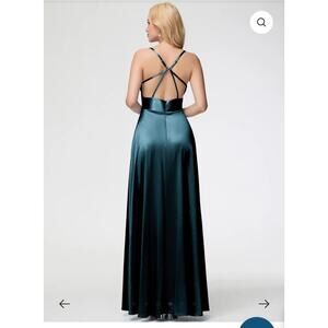 Cicinia Satin Formal Maxi Dress Prom XS Teal Elegant Spaghetti Strap NEED REPAIR
