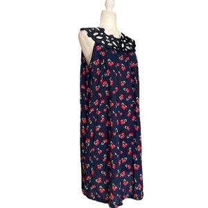 Tags: Cherry Print, Novelty print, Summer, Fruit, Sleeveless, wide Lace, Midi Dress, Lightweight, Fun Party Dress, Resort Beach Vacation Travel Dress, Italy