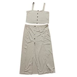 Cider 2 Piece Midi Skirt Set Crop top Button Front With Slit Size 1XL Ribbed