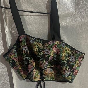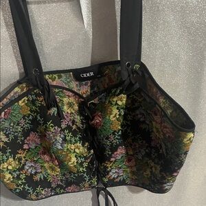 Chic floral tank top with lace-up front. Perfect for a bold look.