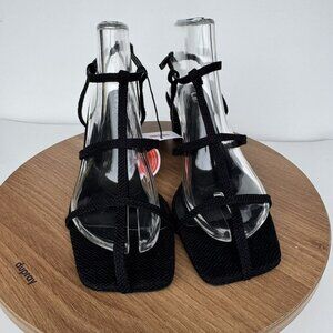 Cider Black Strappy Heeled Sandals Square Toe Design Womens Size 37 / 6.5 US