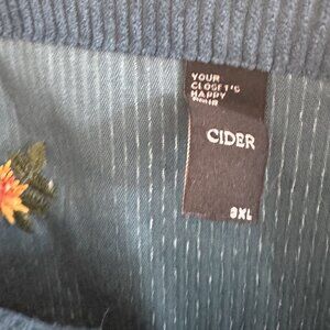 Blue corduroy dress with small yellow and green embroidered flowers. Fits a bit small - closer to 2X