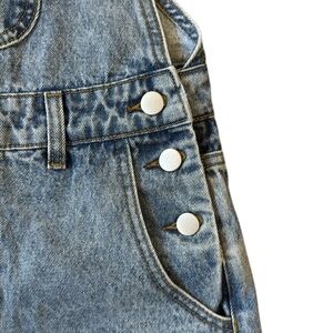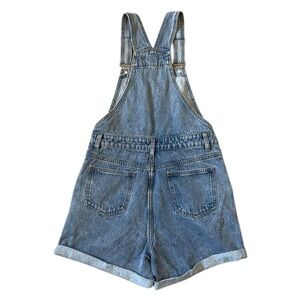 Cider Blue Denim Bib Overall Shorts Shorterall Silver Hardware Rolled Hem XS