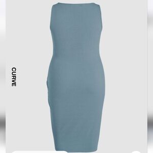 adorable Cider blue ruched midi dress, in like new condition. size large.